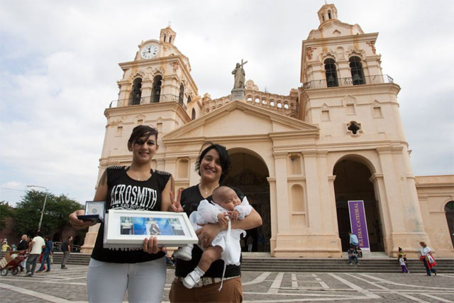 Супружеская пара из Аргентины Соледад Ортис и Карина Виллароэль после крещения дочери в католической церкви