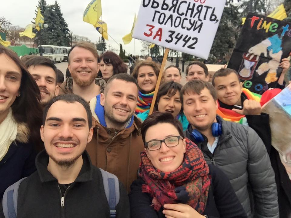 4. And there is one more thing that happened largely in the minds of the activists. I consider it to be the most important – LGBT people refused to remain invisible. Two years ago there were basically no rainbow symbols at Maidan. This time despite firm recommendations from the organizers of the event, activists refused to back off and not to "provoke". There was a lot of rainbow in the sky over Verkhovna Rada, as well as new open faces, who were not afraid to introduce themselves, and to speak in front of the camera. I think, all this as well as "fatigue" because of being invisible is the best what the event brought.