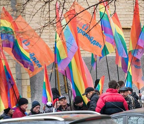 Most likely that none of that reporters who captured this provocation, had even a tiny thought of weirdness of a combination of rainbow flags with orange flags containing motto "Yes! EuroMaidan!" symbolically rendered to the brand mark of ex-President Yushchenko's political party. They were not even confused by the fact that so-called "LGBT-community representatives" bore little resemblance to the European Gay-Pride participants, whose vivid images are usually used by national homophobes to frighten our citizens. On the contrary, they looked like crumpled representatives of lumpenproletariat at rather average age. In this regard we feel very sorry for the reporters for two probable reasons: either they completely lack the ability to analyze, or they deliberately expose the situation in a distorted manner for the sake of sensational materials, which questions their professionalism.