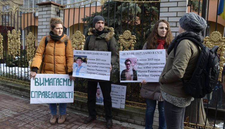 The accused persons are members of the Right Sector: 26-year-old Oleksii Protokovylo, 41-year-old Danylo Dashevskyi, 21-year-old Kyrylo Viliamovskyi and 38-year-old Vitalii Kyrylchuk. They are charged with hooliganism (Part 4 of the Article 296 of the Criminal Code of Ukraine. Hate isn’t being considered as a motivation. Dashevskyi and Kyrylchuk were represented in the court by the lawyer Viktoriia Yelmanova. The lawyer of two other accused couldn’t be present for health reasons.