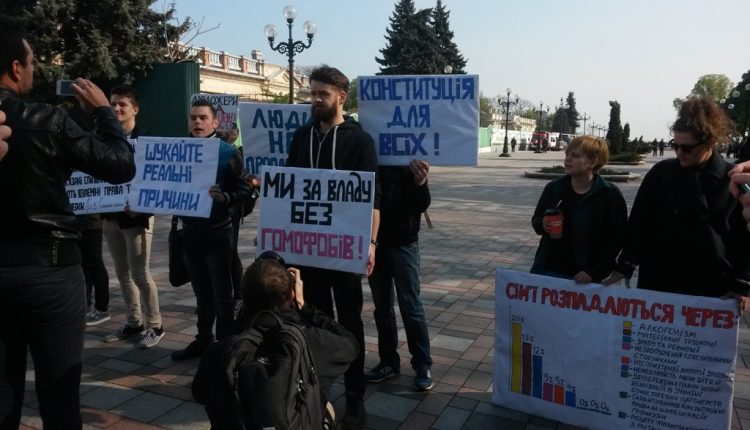 At the same time LGBT activists and civil society actors also were by the Parliament with counter-campaign under the slogan “Look for real reasons”. “Family is composed of people living together, united by common household and having mutual rights and obligations,” they quoted the Family Code of Ukraine. They drew public attention to the different kinds of families and the fact that acceptance of equality of homosexual and heterosexual families doesn’t lead to the marriage decay. The activists reminded that real reasons for family breakdown were alcoholism, material difficulties, infidelity and jealousy, sexual dissatisfaction, substandard housing, impossibility to have children. And there is no National Strategy, Constitution and Government Plenipotentiary for Family in this list.