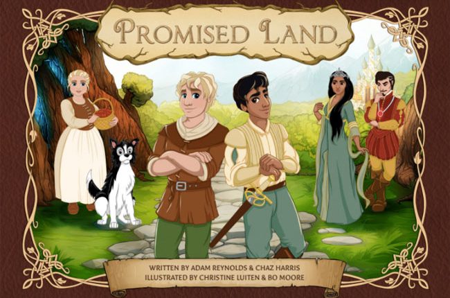 Книга называется «Земля обетованная» (Promised Land), ее авторы, Адам Рейнольдс и Чез Харрис, используют в повествовании приемы классических детских сказок, рассказывая о необычной для этого жанра любви.