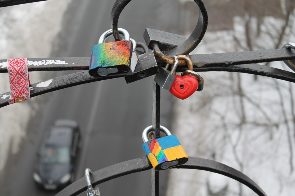 В акции приняли участие влюбленные пары геев и лесбиянок, которые в знак скрепления своих судеб символически оставили на перилах киевского «Моста влюбленных» замки с радужной символикой и своими именами. Каждый замочек был заботливо расписан вручную накануне вечером.