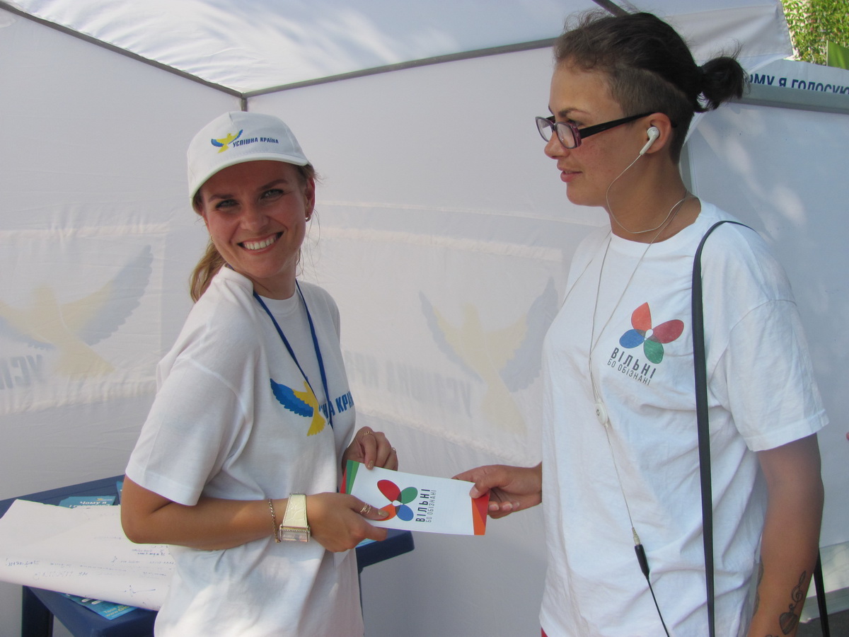 За время мероприятия активисты раздали большое количество буклетов и брошюр «Вільні бо обізнані» и объяснили прохожим, заинтересованным в проблематике, в чем же проявляется дискриминация.
