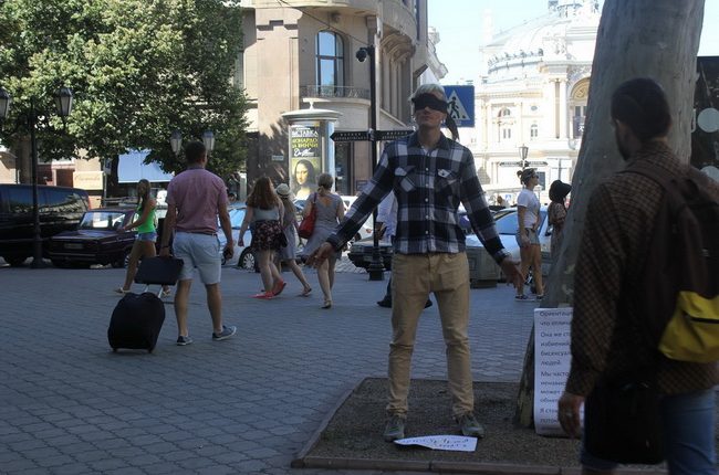 ЛГБТ-активист Игорь Захарченко предложил прохожим обнять его, чтобы выразить свою поддержку. «Ориентация – это единственное, что отличает меня от большинства. Она же становится причиной избиений, убийств геев, лесбиянок, бисексуалов и трансгендерных людей», – было написано на его плакате. Однако поддержать любого человека, независимо от его ориентации просто – достаточно объятий. В течение 25 минут Игорь стоял на одной из центральных улиц с повязкой на глазах, «потому что верит, что люди могут быть добрыми» несмотря на то, что в этом году несколько раз подвергался нападениям.