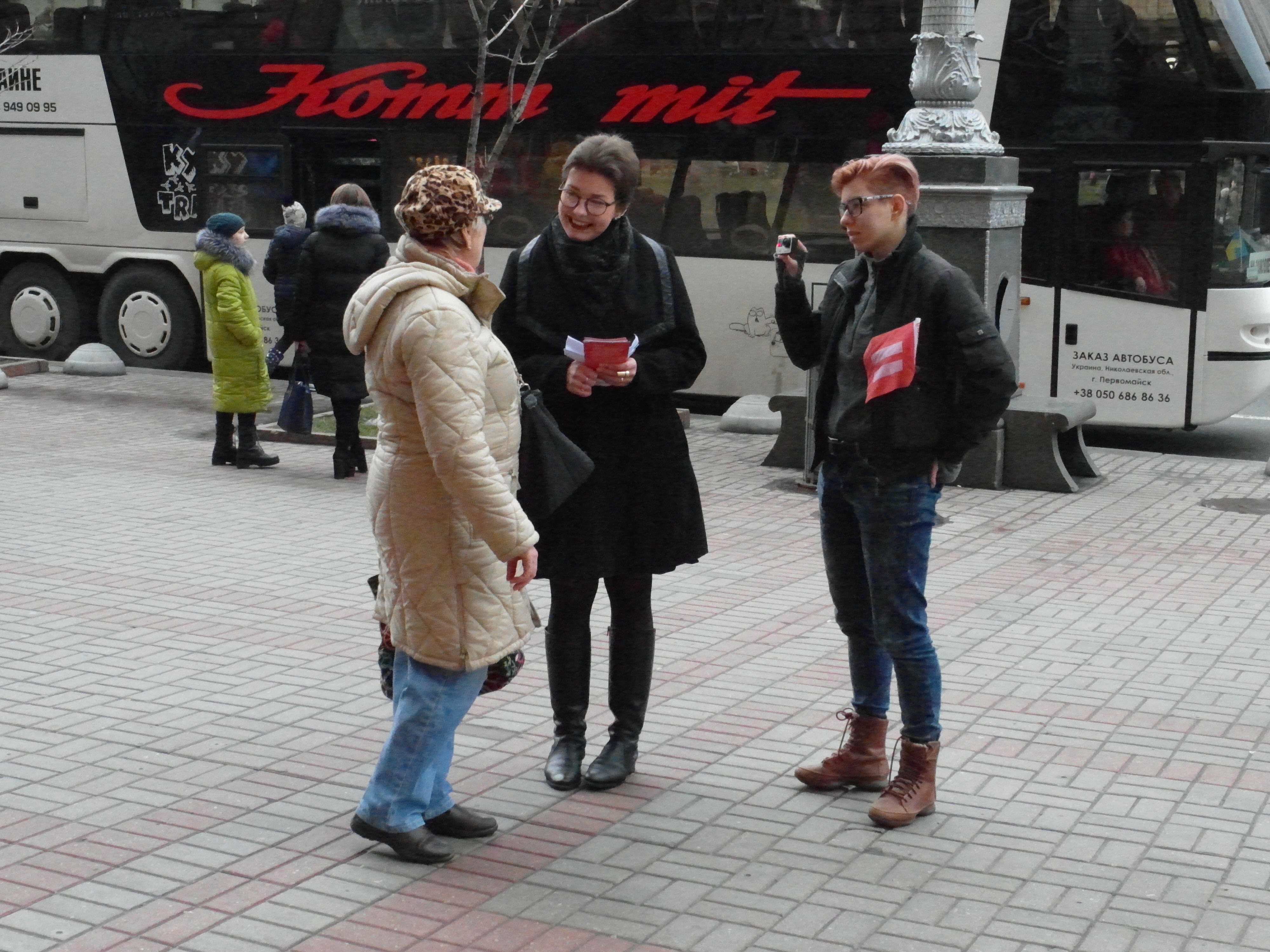 Акция преследовала цель напомнить гражданам о проблеме нарушения прав человека в Украине и мире, а также обсудить методы защиты и закрепления этих прав. Активисты раздавали информационные материалы о правах человека и эффективных способах борьбы за них, беседовали с прохожими о необходимости защиты прав, а также проводили видеоопрос на предмет осведомленности о правах человека, интересуясь мнением о проблеме дискриминации в Украине.