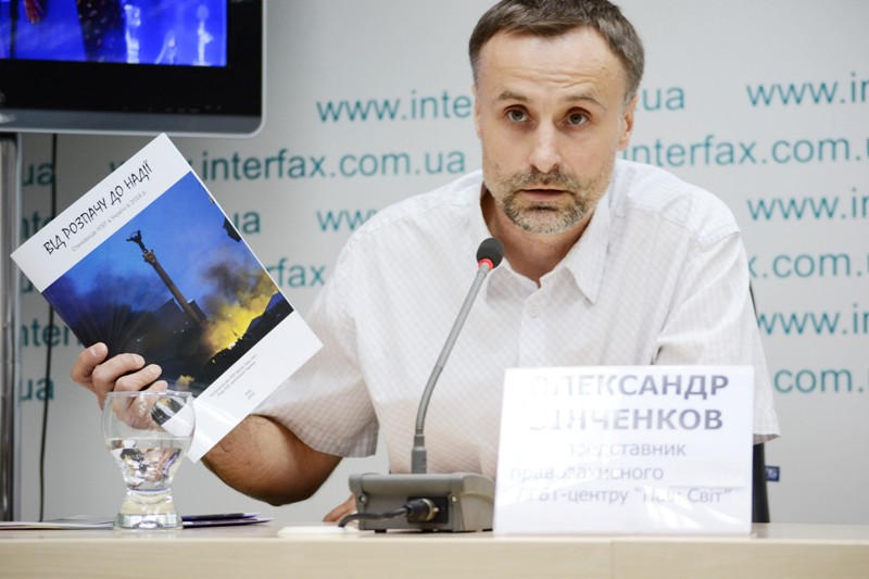 Александр Зинченков, представитель правозащитного ЛГБТ-центра «Наш мир», рассказал об участившихся случаях дискриминации ЛГБТ. По его словам, в 2014 году было зарегистрировано 40 преступлений, совершенных на почве ненависти в отношении ЛГБТ, а с начала 2015 года их уже насчитывается около 10. Многие помнят инцидент с кинотеатром «Жовтень». Как заметил Зинченков, отвечая на вопросы журналистов, на суде люди, подозреваемые в причастности к поджогу, не только не скрывали ненависти к ЛГБТ, но и подчеркивали ее, как бы оправдывая свои действия.