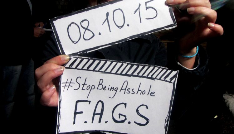 Активисты из Украины и Молдовы, среди которых были и представители Гей-альянса Украина, сняли провокационный ролик. В нем высмеивается отношение многих людей к таким понятиям как толерантность и терпимость как к вредной привычке вроде алкогольной или наркотической зависимости. Ролик называется «Fallen Assholes Group Support», сокращенно — F.A.G.S. («Группа поддержки падших подонков», аббревиатура F.A.G.S соответствует грубому обозначению слова «гей» в английском сленге. — прим.ред.).