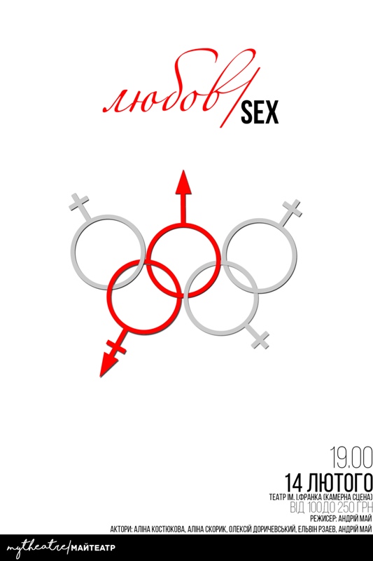Премьера спектакля «Любовь/Sex» состоится 14 февраля в 19:00 на камерной сцене театра им. Ивана Франко.