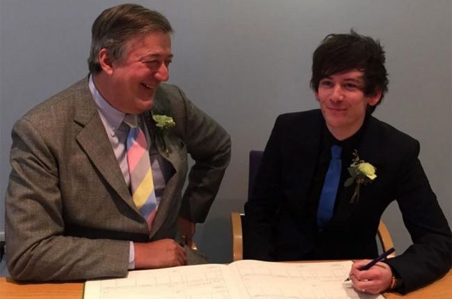 Фото, запечатлевшее торжественный момент регистрации брака, Фрай разместил в своем Твиттера, за которым следит 8,5 миллионов фолловеров. В сопровождающем его посте Стивен упомянул "маленького Оскара Уальда", который был свидетелем их свадьбы, имея ввиду небольшую куклу, сидящую рядом на столе. Напомним, что в 1997 году Стивен номинировался на Золотой глобус за исполнение роли Уайльда в байопике о великом ирландском драматурге.