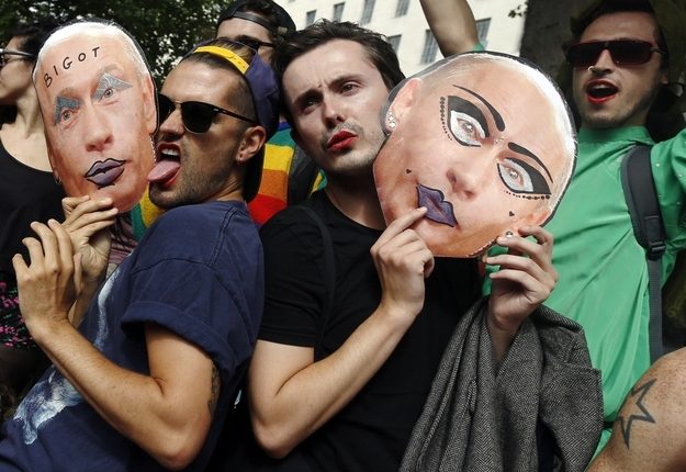Волна пикетов против гомофобных законов и притеснений гомосексуалов в России прокатилась по миру.