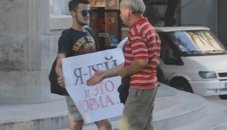 Находил парень и поддержку: один из прохожих подошел пообщаться и познакомиться, сказал, что тоже является геем, хотя заявить об этом громко лично не готов.