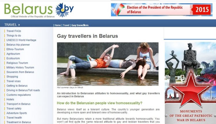 На официальном сайте Республики Беларусь размещена информационная справка для приезжающих в страну гомосексуальных туристов. В ней кратко изложено, чего могут ожидать иностранные гости другой ориентации в краю голубых озер и рек.