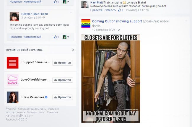 Таким образом, количество американцев, выходящих из шкафа через Фейсбук, за последний год возросло в три раза по сравнению с тем, что было год тому назад.
