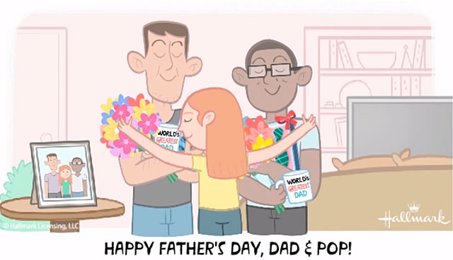 В предыдущие годы Hallmark расширила свою линейку бумажных открыток: специальная открытка для двух мам была выпущена ко Дню Матери, мужская родительская пара появилась на открытке, приуроченной ко Дню отца.