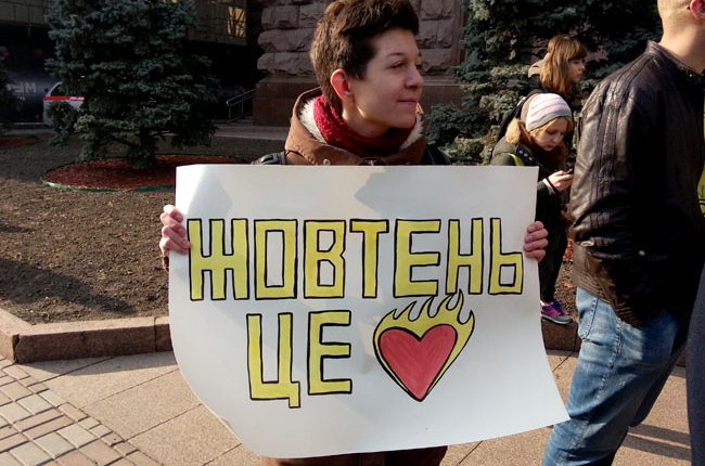 В Киеве возле здания горадминистрации состоялась гражданская акция, которую решено было назвать так же, как и хэштег, появившийся в социальных сетях: #savezhovten (спасем "Жовтень").