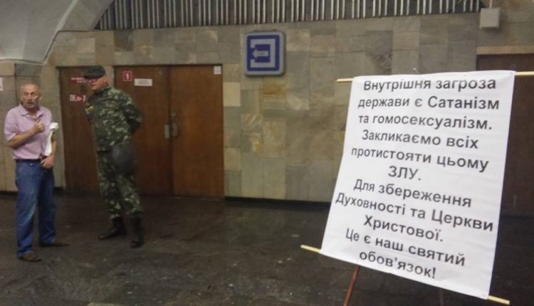 Знаете мужчину в переходе между Крещатиком и Майданом, который собирает деньги якобы для украинской армии и агитирует против сатанизма и гомосексуализма? Уже месяц как там стоит. С плакатом и звукоусилительной техникой, из которой доносится запись, которую в США и Европе наверняка бы расценили как разжигающую ненависть.