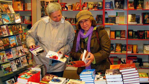 Светлана Алексиевич и Маргарита Шарапова, авторка книги «Москва. Станция Лесбос», в квир-магазине «Индиго» (источник)
