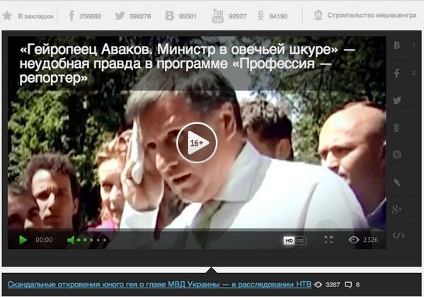 Российский канал НТВ сообщил некую "неудобную правду" о главе украинского МВД Арсене Авакове. Сюжет программы "Профессия — репортер" получил весьма оригинальное название: "Гейропеец Аваков". Что называется — в копилочку другим НТВшным сюжетам об украинских политиках, названных не менее цветисто: "Шоколадный заяц Порошенко", "Агент тайного ордена, теневая жизнь Арсения Яценюка", "Принцесса у параши" (это про Тимошенко) и "Фурии майдана: секс, психоз и политика". Сюжет про "гейропейца" с сайта телекомпании загадочным образом исчез, а вот программами про "фурий", "агента тайного ордена" и "парашу" там можно насладиться и сейчас. Если будет желание и возможность смотреть образцы современного российского телетворчества без бумажного пакета для блевотины.